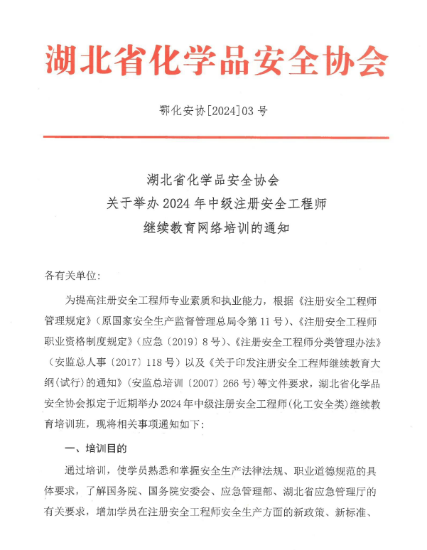 2024年中級(jí)注冊安全工程師繼續(xù)教育網(wǎng)絡(luò)培訓(xùn)通知